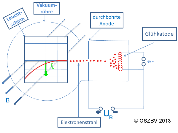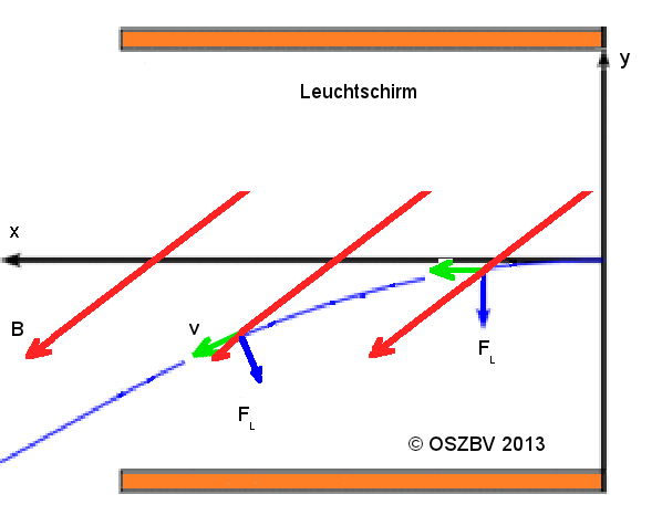 Fliegen die Elektronen durch ein Magnetfeld so wirkt auf sie die Lorentzkraft.