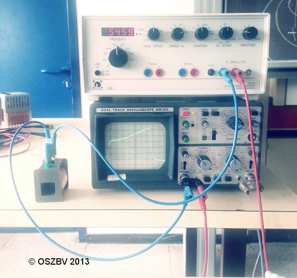 Hier fehlen Bilder des Oszilloskops und des Funktionsgenerators und etwas Text zu dem, wie der Aufbau funktioniert.
