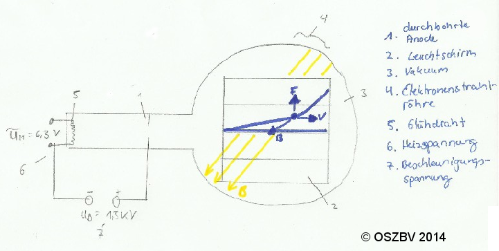 Elektronenstrahlröhre mit Magnetfeld, Zeichnung von Emre Sönmez 17.2.2014