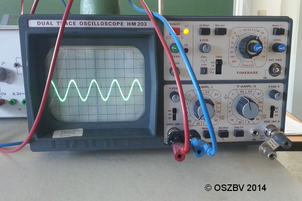 Versuchsbeobachtung: Oszilloskop während der Messung, Foto von Emre Sönmez 2.7.2014