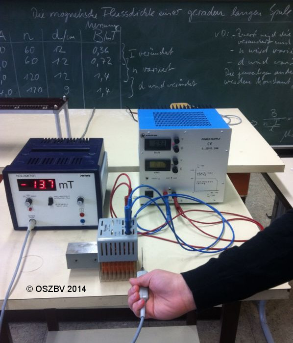 Das wird für verschiedene Werte der magnetischen Flussdichte und verschiedene Windungszahlen gemessen.