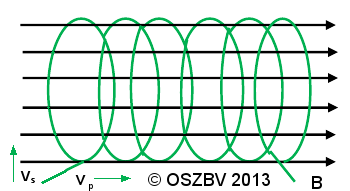 p: parallel zu den Feldlinien - darauf übt die Lorentzkraft keine Wirkung aus, es