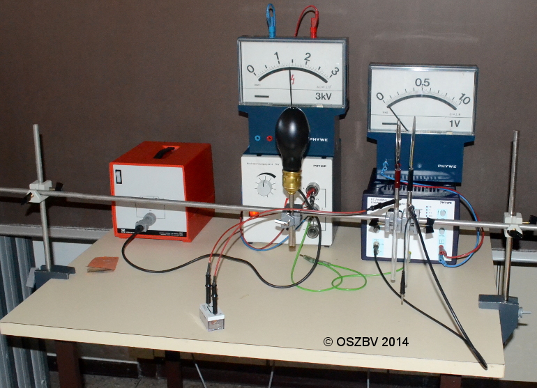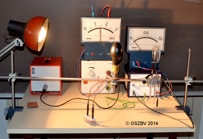 1) Beim Einschalten der UV-Lampe ist fließt eine Strom, den man mit dem Messverstärker meseen kann.