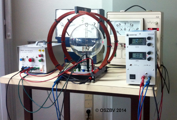 Fadenstrahlrohr Netzgerät für das Fadenstrahlrohr Voltmeter Helmholtzspulenpaar Netzgerät für das Helmholtzspulenpaar Amperemeter