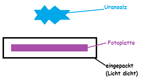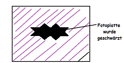 → Obwohl die Fotoplatte lichtdicht abgepackt war, ließ sich eine Schwärzung erkennen.