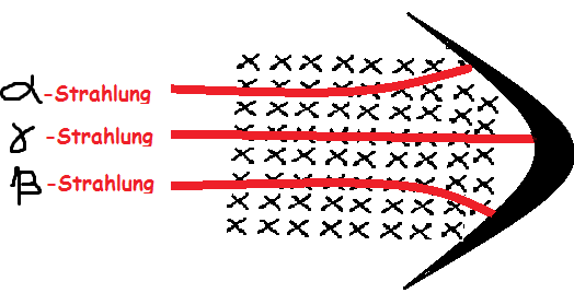 Die Ablenkung der Alpha-Strahlung kan mit Hilfe der
